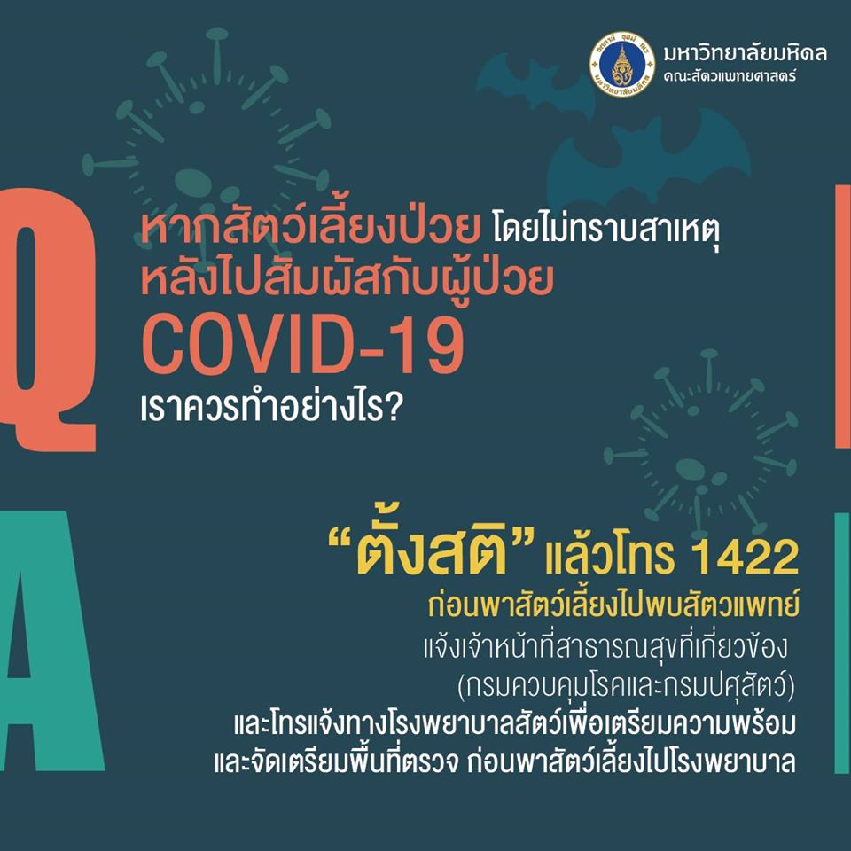 4. หากสัตว์เลี้ยงป่วยโดยไม่ทราบสาเหตุหลังไปสัมผัสกับผู้ป่วย COVID-19 เราควรทำอย่างไร?