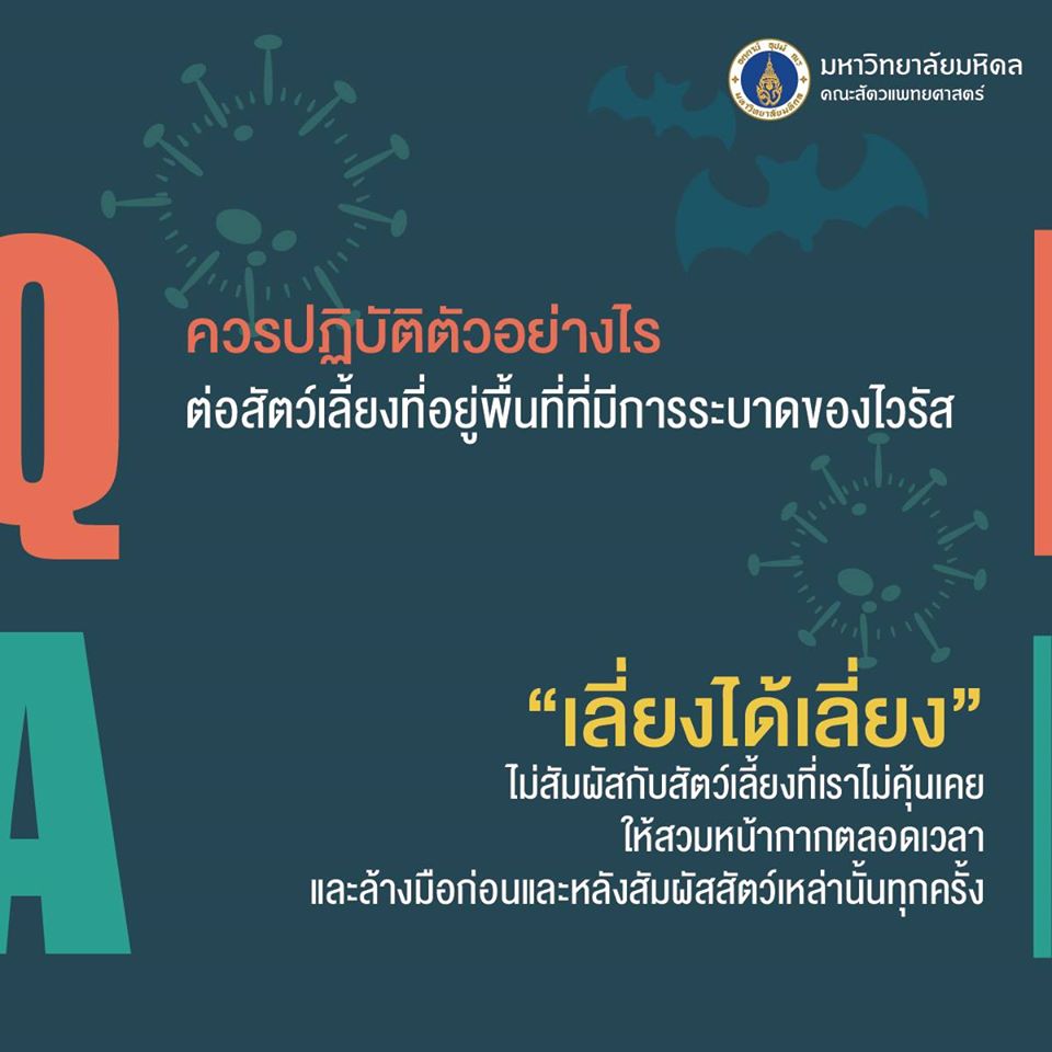 5. ควรปฏิบัติตัวอย่างไรต่อสัตว์เลี้ยงที่อยู่พื้นที่ที่มีการระบาดของไวรัส?