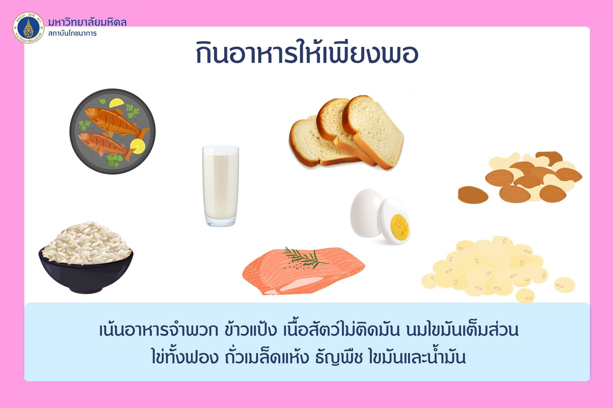 COVID-19 กับภาวะโภชนาการในผู้สูงอายุ : กินอาหารให้เพียงพอ เน้นอาหารจำพวกข้าว แป้ง เนื้อสัตว์ไม่ติดมัน นมไขมันเต็มส่วน ไข่ทั้งฟอง ถั่วเมล็ดแห้ง ธัญพืช ไขมันและน้ำมัน.